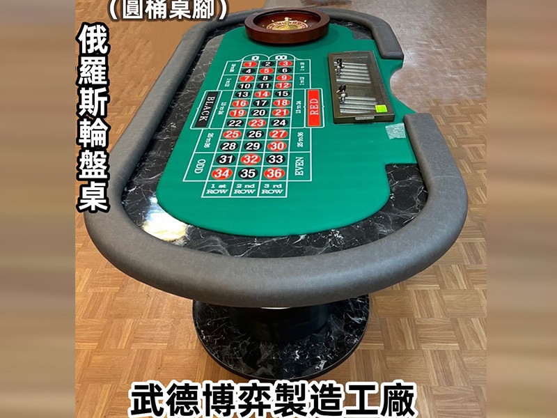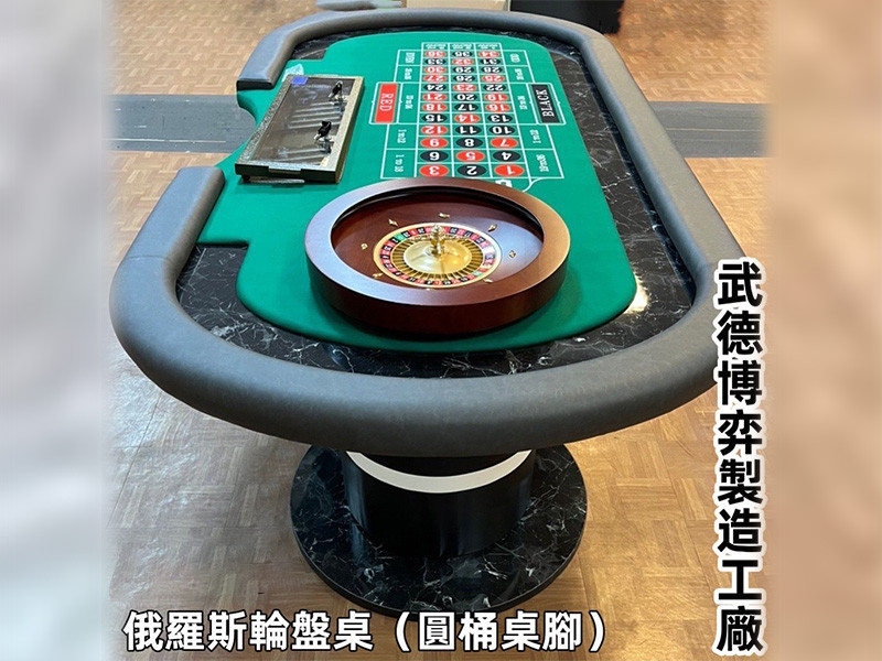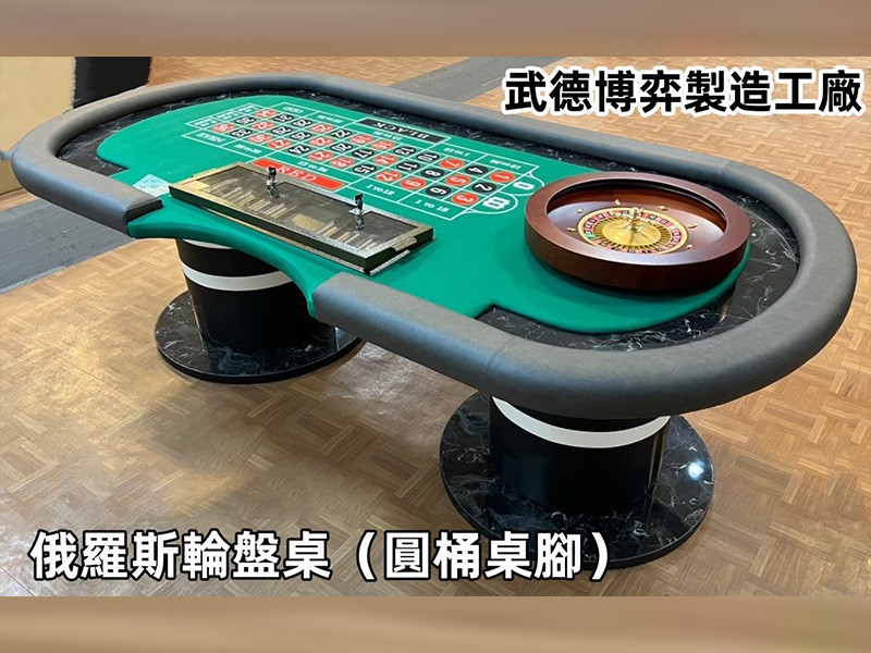這款由 武德博弈賭桌製造工廠 精心打造的 俄羅斯輪盤桌(圓桶桌腳款式),不僅結合經典的輪盤設計,更搭配圓柱式大理石紋底座,展現出高端賭場的專業形象與尊貴質感。